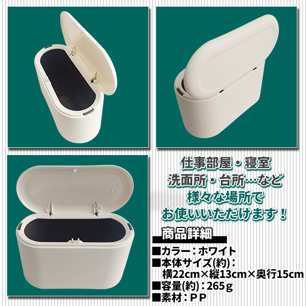 ふた付きごみ箱 卓上 ゴミ箱 おしゃれ スリム 北欧 洗面所 卓上用 インテリア シンプル ダストボックス ワンタッチ ホワイト