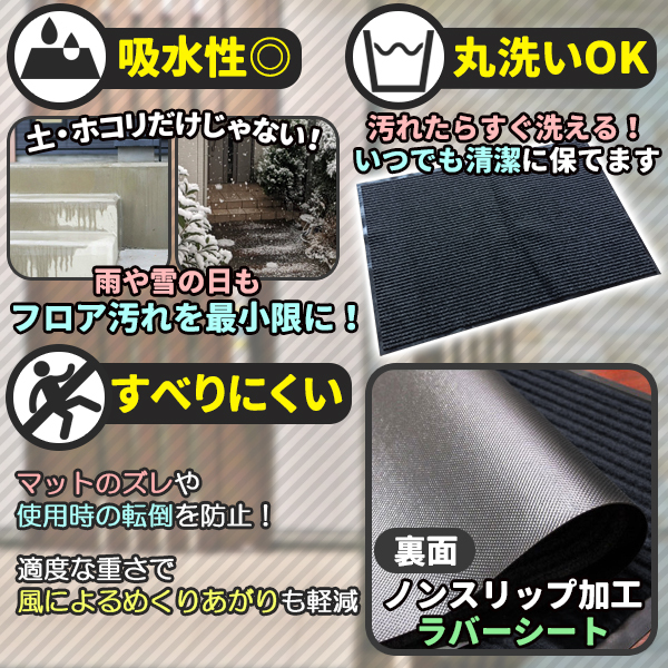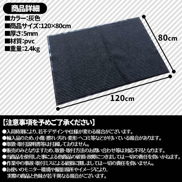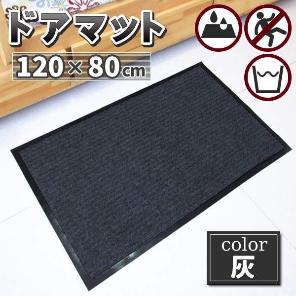 玄関マット 吸水 マット 屋外 室内 洗える 泥落とし 滑り止め付き 120cm × 80cm 長方形 無地 ラバー ズレ防止 滑らない おしゃれ 店舗 事務所 業務用 グレー