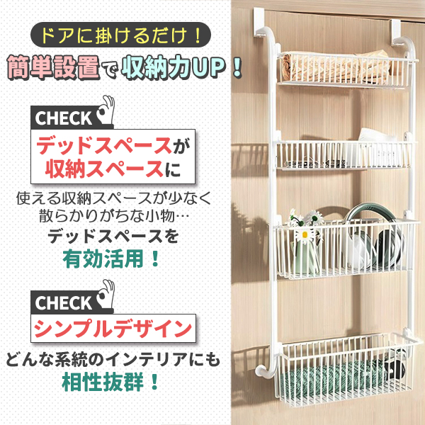 ウォールポケット ウォール 収納 4段 吊り下げ収納 ポケット 吊り下げラック ドアハンガー ドア収納 ホワイト 白 子供部屋 スリム 布じゃない 頑丈 しっかり