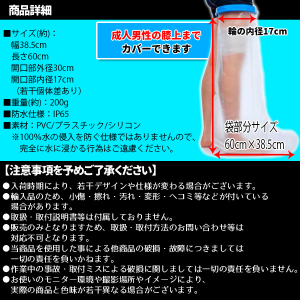 ギプスカバー ギブスカバー 足 脚 膝 防水 お風呂 カバー ロングタイプ シャワーカバー 膝まで 繰り返し使える 大人 子供 入浴 骨折 怪我