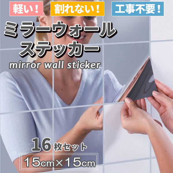 ウォールミラー おしゃれ 鏡 ミラー シール 16枚入り ミラーシート ウォールステッカー 割れない カット自由 貼る鏡