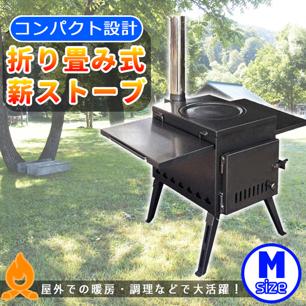 薪ストーブ コンパクト 折り畳み式 アウトドア キャンプ コンロ 屋外 焚き火 車載 BBQ 火の粉止め 暖房 調理 Mサイズ クリーンバーン燃焼