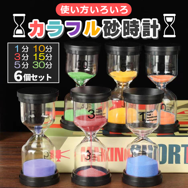 砂時計 6個セット インテリアタイマー 砂タイマー カラフル 砂時計 6個セット おしゃれ かわいい インテリア 子ども キッズ
