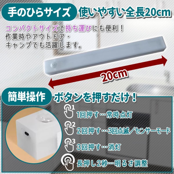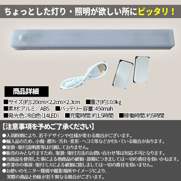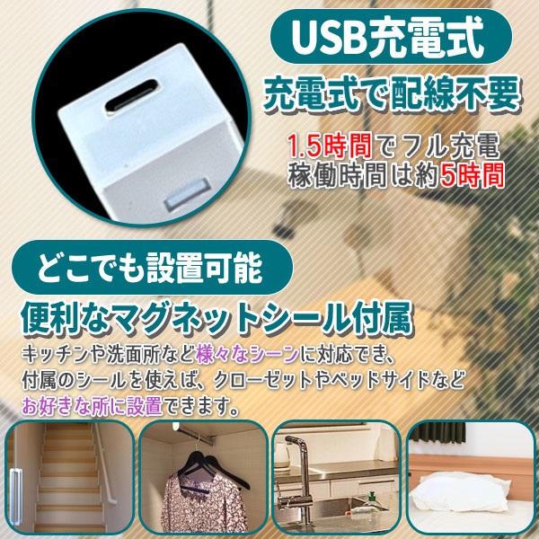 人感センサーライト LEDセンサーライト LEDライト USB充電 感知 廊下 室内 玄関 感知式 小型 充電式 防災グッズ