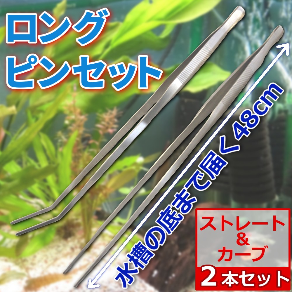 ロングピンセット 48 cm 2 本 セット アクアリウム 水草 ADA水槽 トリミング 用品 海水魚 淡水魚 ステンレス 水槽 掃除 メンテナンス