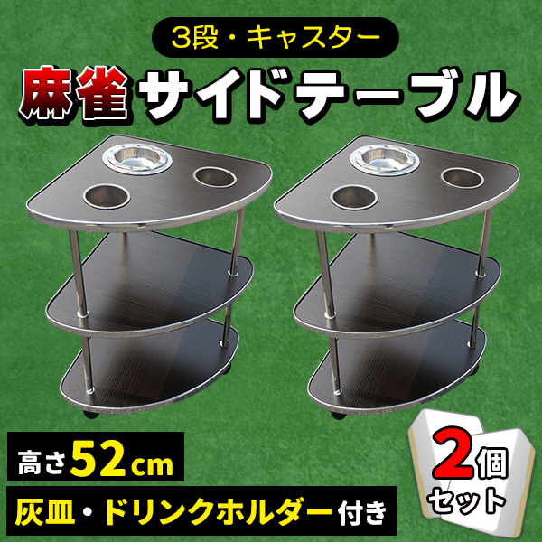 麻雀 サイドテーブル 2個セット 全自動麻雀卓 キャスター付き 灰皿 荷物置き 3段 麻雀卓 雀卓 ドリンクホルダー 卓 机 テーブル 吸い殻