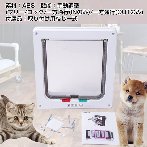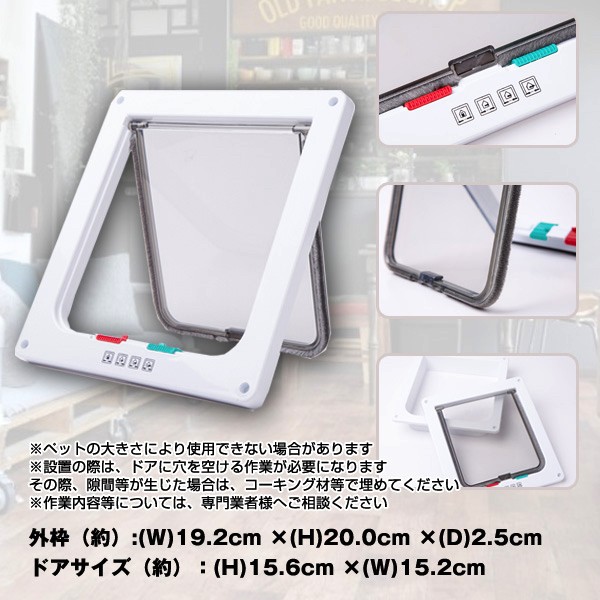 ペットドア Sサイズ ペット用 猫 犬 小型 出入り口 ペット用ドア 引き戸 後付け 取り付け 勝手口 フラップ ペット小窓 白 ホワイト
