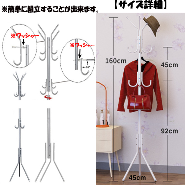 ポールハンガー コートハンガー コート掛け 白 スタンド 耐荷重 20kg 組み立て 頑丈 丈夫 枝 コンパクト シンプル インテリア ホワイト 省スペース パイプ