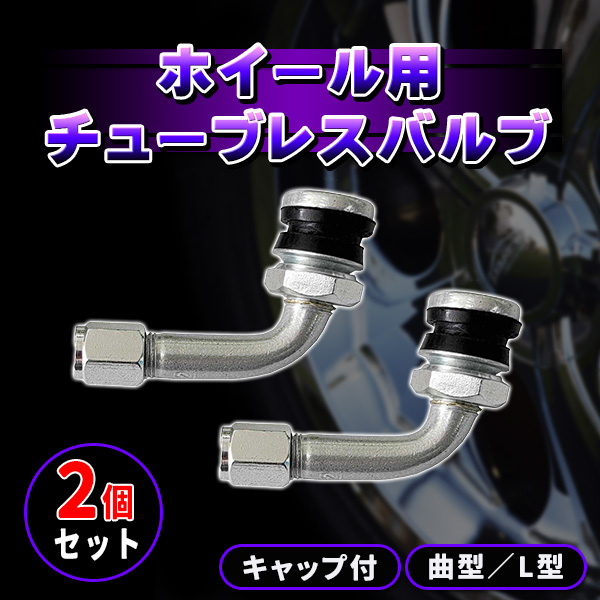 ホイール用 L型 チューブレス エアバルブ 2個 セット 原付 バイク 小径 タイヤ タイヤと一緒に交換 キャップ付