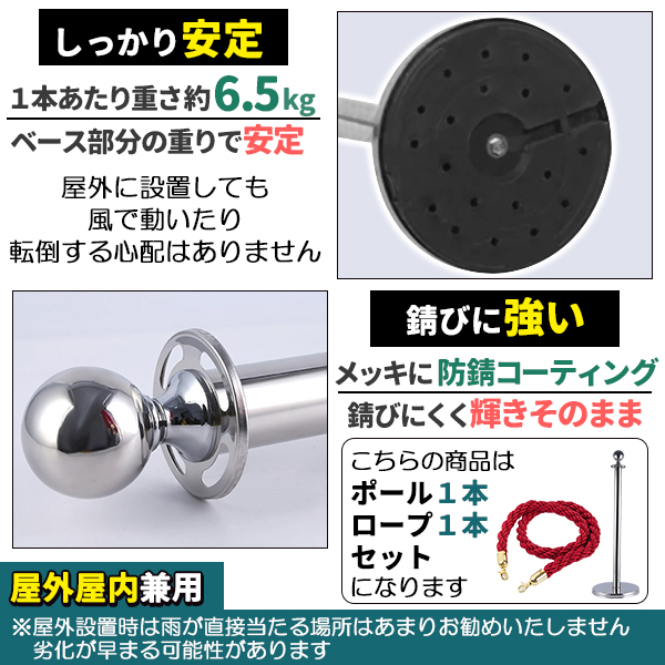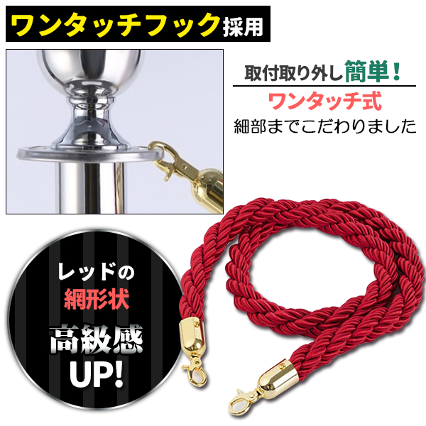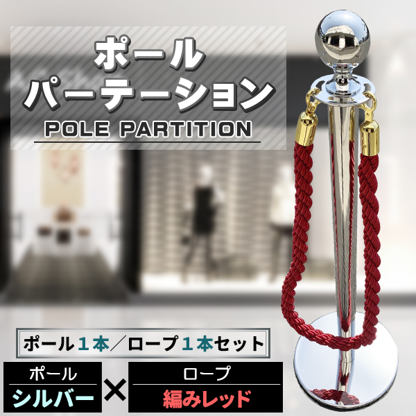 ポールパーテーション 1本 セット シルバーポール レッドロープ 縄 ガイドポール ポール スタンド パーテーション 通路 仕切り 整列 案内 ガイド 受付 屋外