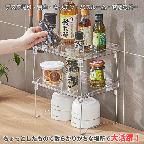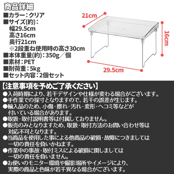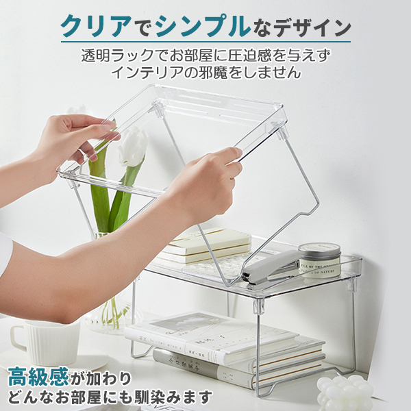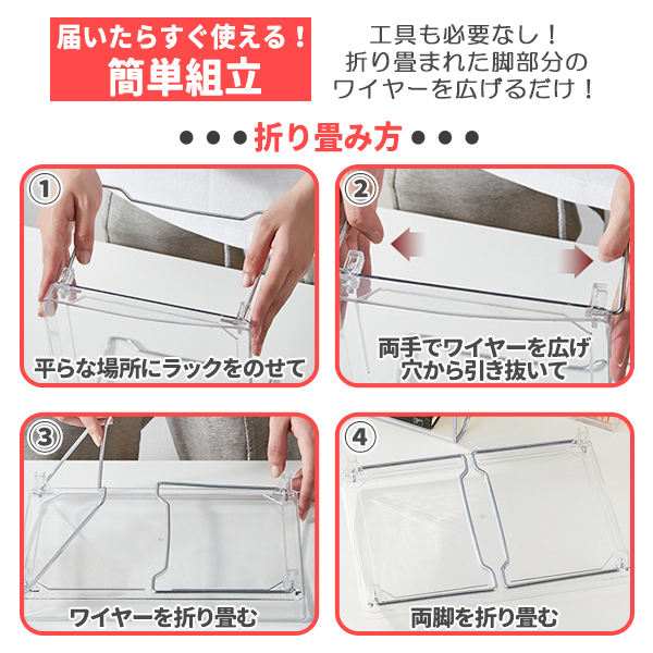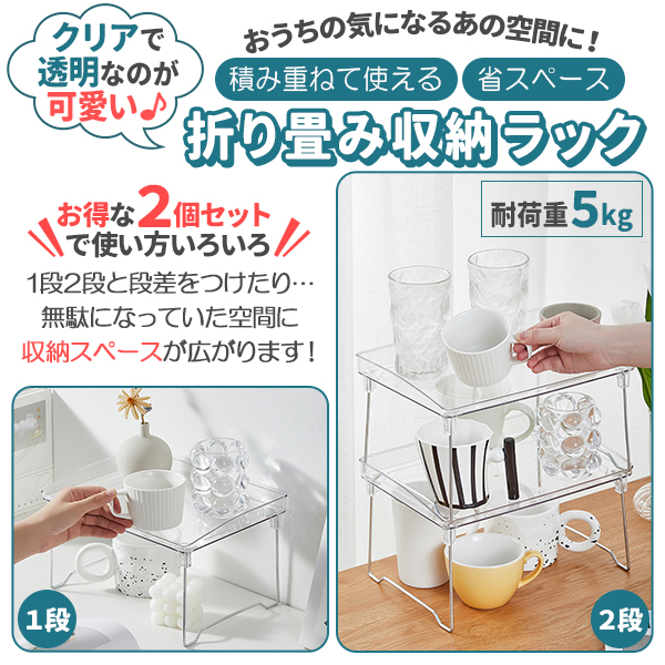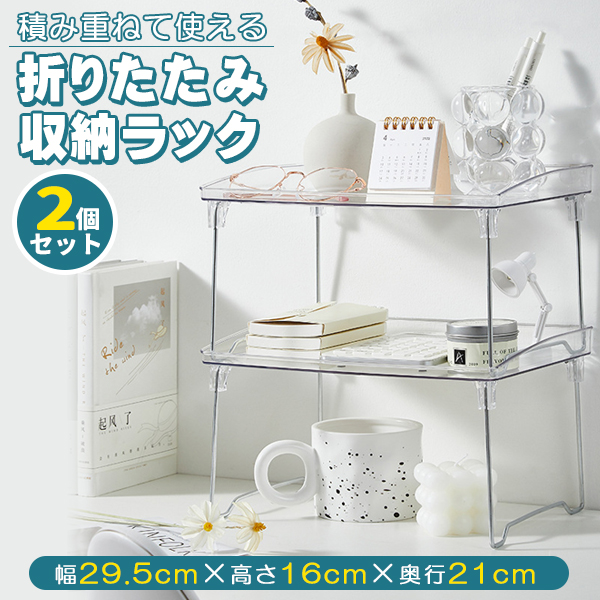 収納ラック 折りたたみ ラック クリア 透明 2個セット 2段 省スペース オープンラック SNS映え 韓国雑貨 インテリア 折り畳み ミニ テーブル 卓上