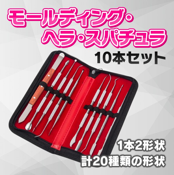 1本2形状 計10本で20種類の形状 多目的にご利用頂けます。モールディング・ヘラ・スパチュラセット (ケース付き)
