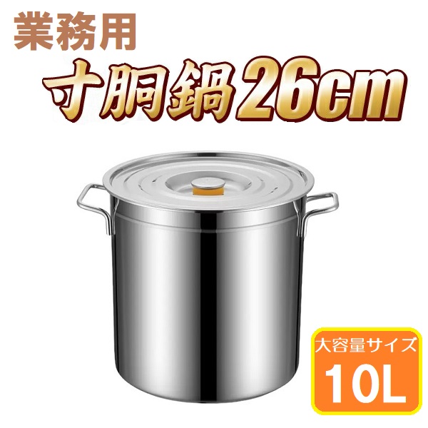 寸胴鍋 26cm IH対応 ステンレス 業務用 10L 大型 巨大 特大 大容量 大きい 軽量 ステンレス製 焦げない 寸胴 なべ 鍋 蓋 ふた アウトドア キャンプ