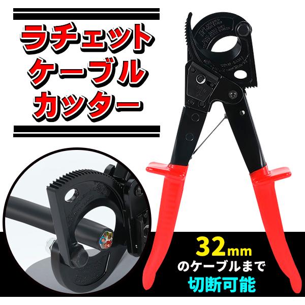 ラチェット ケーブルカッター 手動 切断 工具 ラチェット式 軽量 ラチェットケーブルカッター 単線 ヨリ線 アルミ線 複合線 銅線 32mm