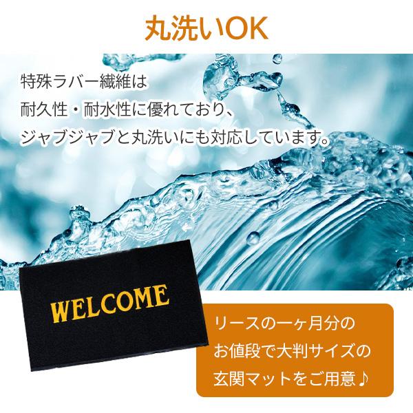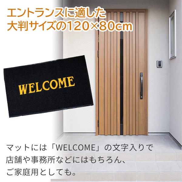 マットには「WELCOME」の文字入りで店舗や事務所などにはもちろん、ご家庭用としても。