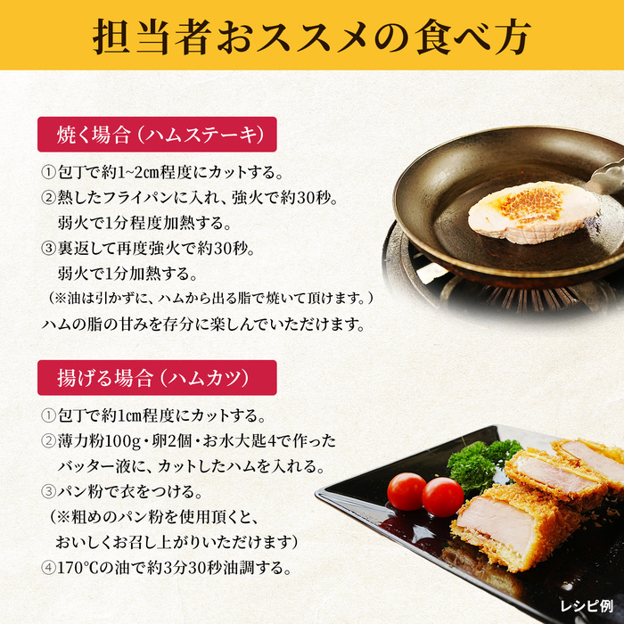 ■原材料名:豚もも肉(輸入)、還元水あめ、食塩、たん白加水分解物(乳成分を含む)/調味料(アミノ酸等)、リン酸塩(Na)、酸化防止剤(ビタミンC)、発色剤(亜硝酸Na)