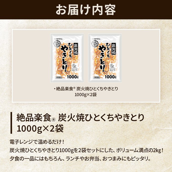 プリマハム 絶品楽食 炭火焼 ひとくち やきとり 1000g×2袋 惣菜 焼き鳥 まとめ買い 大容量 肉料理 おかず おつまみ 冷凍 プリマハム【爆買】