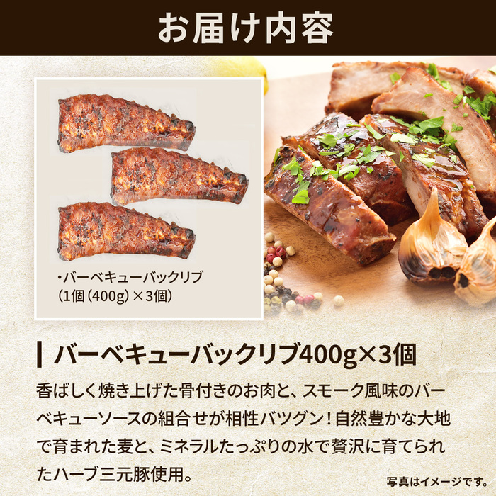 バーベキューバックリブ 400g × 3個セット 送料込 [ 骨付き 肉 ロース バックリブ バーベキュー ] 肉ギフト【爆買】