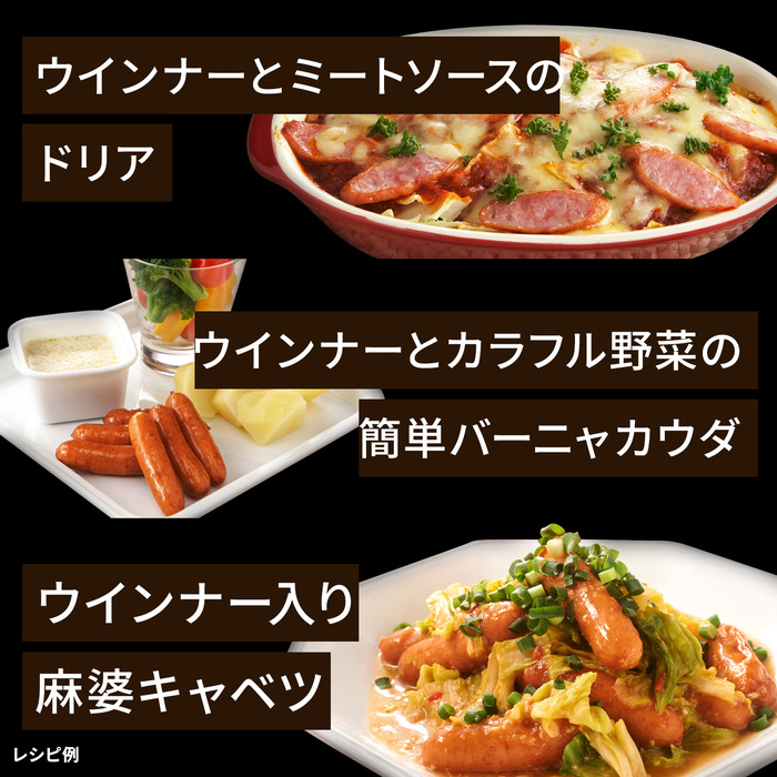 ■原材料名:豚肉(輸入又は国産(5%未満))、豚脂肪、還元水あめ、食塩、たん白加水分解物(ゼラチンを含む)、香辛料、砂糖/調味料(アミノ酸)、リン酸塩(Na、K)、保存料(ソルビン酸)、pH調整剤、酸化防止剤(ビタミンC)、発色剤(亜硫酸Na)