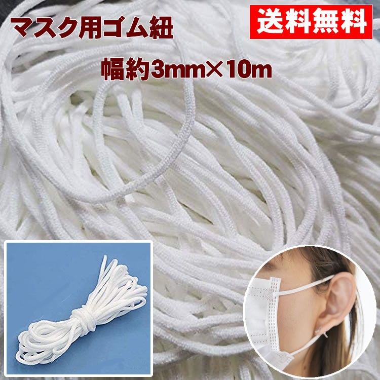 マスク用ゴム マスク用ゴム紐 10m 3mm幅 ゴム 紐 白 ホワイト 手作りマスク マスク紐ハンドメイド 送料無料