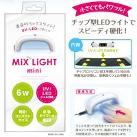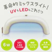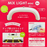 ●革命的ミックスライト。UVもLEDも対応!●6Wで軽量コンパクト!フットにも使えるアーチ型!●自動タイマー:30秒付き!滑り止め付き!●UVレジンでアクセサリー作りもOK!●保証:1年間有効●UVジェル対応波長数:355〜375mm、LEDジェル対応波長数:390〜410mm●本体重量:60g●素材:ライト本体:PC、ACアダプタ-:PC、PVC(コード部)●内容:ミックスライトミニ:1個、専用アダプター:1個、説明書/保証書●内容量:60g●外形寸法:W145×H50×D40mm