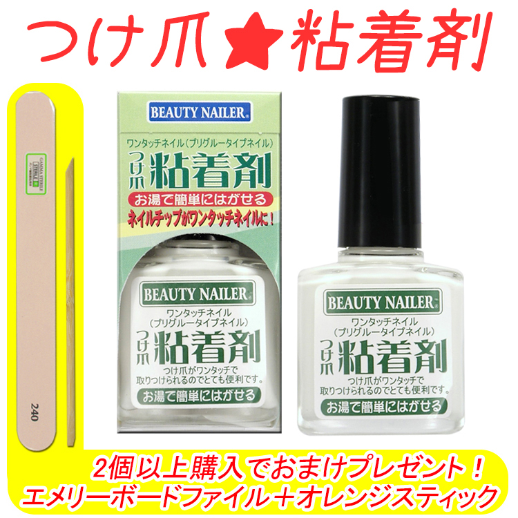 つけ爪粘着剤とは?・ネイルグルーとは異なりネイルグルーリムーバーを使わなくてもつけ爪装着後、お湯でカンタンに剥がすことができる粘着剤です。・自爪を傷めずつけ爪も繰り返しお使いになれます。<ネイルチップの取り外し方法>・ネイルチップをぬるま湯に10から15分浸した後、チップの根元を押さえチップ先端を少しだげ持ち上げ、前方に引っ張るようにゆっくりと剥がして下さい。<粘着剤のはがし方>・ネイルチップの粘着剤を大まかに剥がし、ネイルチップに残った粘着剤は消毒用アルコールで軽く拭き取って下さい。<ワンタッチネイル(プリグルータイプ)の取り外し方>・ワンタッチネイルを取り外すときは、ネイルチップをぬるま湯に10〜15分浸した後、ネイルチップの根元を押さえながら先端部分をゆっくりと少しだけ持ち上げて下さい。
