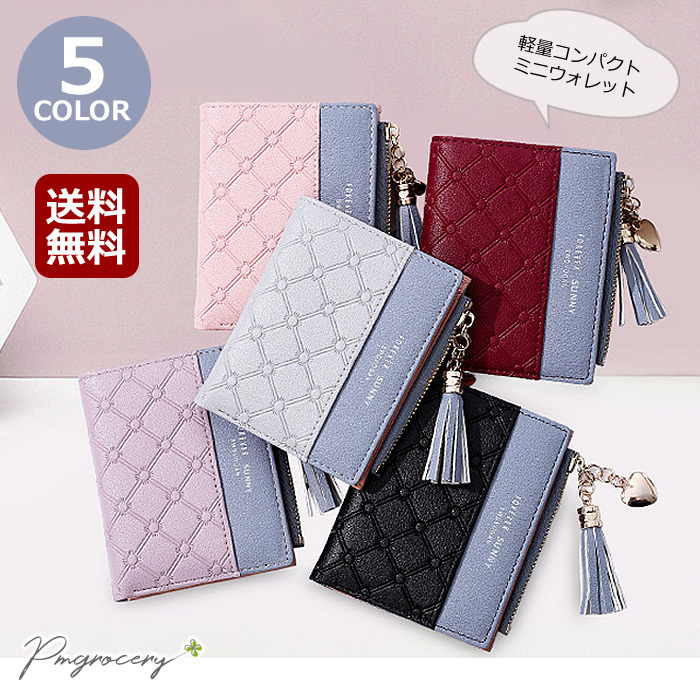 手のひらサイズで上品なバイカラーの二つ折りミニ財布。型押しデザインとタッセル付き小銭入れで見た目も機能も◎。小さめバッグでもかさばらず、普段使いからギフトまで幅広く活躍します。