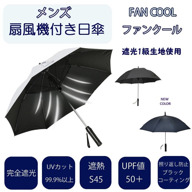 冷感グッズ 日傘 メンズ 男性用 紳士用 扇風機付き日傘 完全遮光 UVカット99.9%以上 FAN COOL ファンクール 21インチ