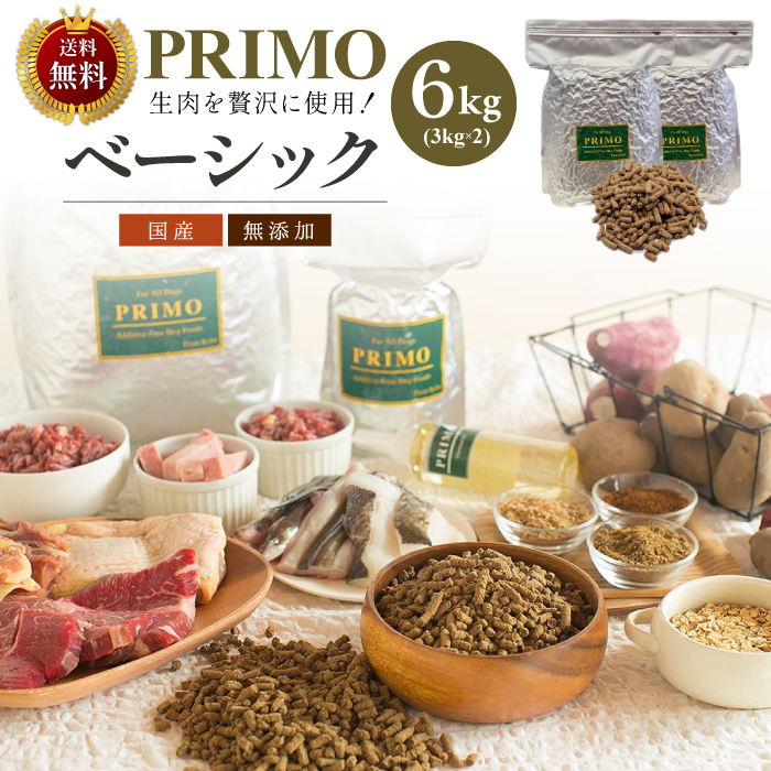 | 注意事項 | ○プリモフードは酸化防止剤、防腐剤、防カビ剤等を一切使用しておりませんので高温・湿気にも弱いため保存には充分お気をつけ下さい。特に梅雨時期・夏場は、注意してください。 ○愛犬に新鮮な状態で食べてもらう為にも1ヶ月程度で食べきれる量の御購入をおすすめします。 ○色や形にこだわらず犬の健康を第一に考え製造していますので、色や形など見た目にこだわる方はご遠慮ください。 |