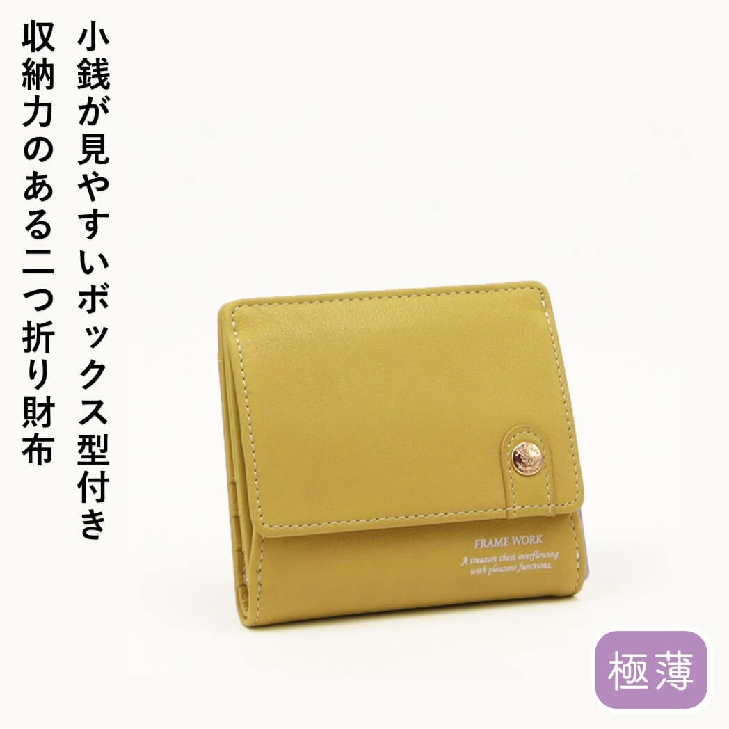 小銭が見やすいボックス型付き 収納力のある二つ折り財布