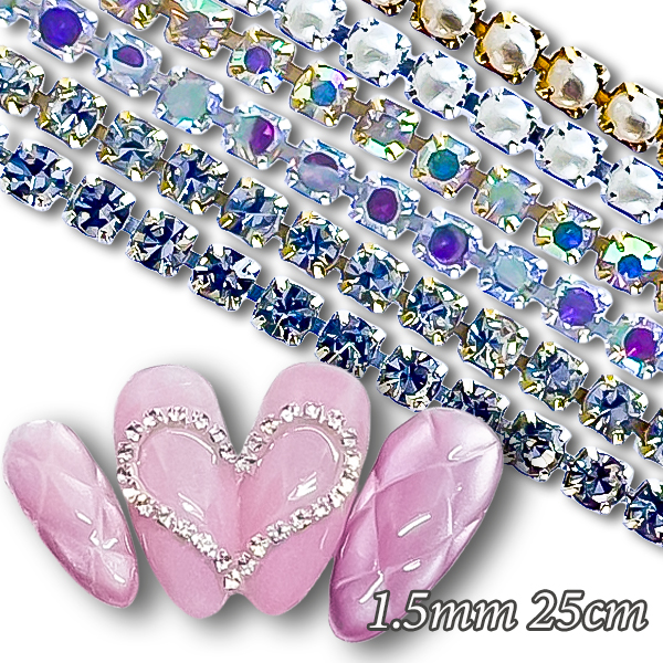 1.5mm幅 25cm ネイルパーツ ラインストーンチェーン クリスタルストーン チェーン パール オーロラカラー シルバー ゴールド 極細 ネイルチェーン