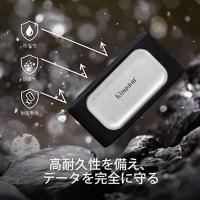 |   | Kingston の XS2000 ポータブル SSD では、USB 3.2 Gen 2x2 の速度を活用して、小型外付けドライブで次世代のパフォーマンスを提供します。XS2000の転送速度は超高速の最大2,000MB/秒※1で、ほぼ中断がなく、生産性を大幅に向上します。XS2000では、高解像度画像、8kビデオ、およびサイズの大きな文書をすばやくオフロードし編集できるよう、最大4TB※2の高速ストレージ容量を提供します。 ドライブは、将来のストレージ需要増加にも対応しており、出荷時からほとんどのデバイスと互換性があります。 接続はUSB Type-C※3 のため、コンテンツ制作者の方は、どこでも PC またはモバイル機器でデータにアクセスできます。XS2000には取り外し可能で堅安なスリーブが付属しており、IP55 の防水・防塵等級※4ですので、仕事でも遊びでも、意欲作の制作でも、ロケーション撮影や冒険旅行のお供に最適です。