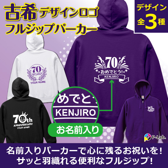 古希 お祝い 70歳 古希のお祝い 上着 パーカー スウェット 女性 男性 紫 プレゼント 名入れ 綿100% 10.0oz フルジップ 70th