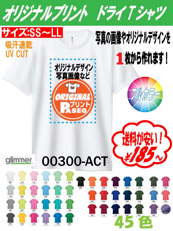 オリジナルプリント Tシャツ 無地 半袖 速乾 ドライ サラサラ 半袖 グリマー 人気 4.4オンス 体育祭 運動会 スポーツ 300-ACT チーム イベント 爆買
