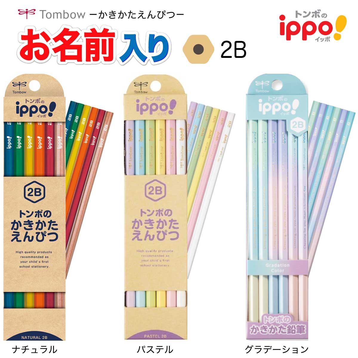 名入れ鉛筆 ippo イッポ かきかたえんぴつ 六角 ナチュラル パステル グラデーション トンボ 無地 書き方 かきかた えんぴつ 小学生 入学祝 エンピツ 名入れ