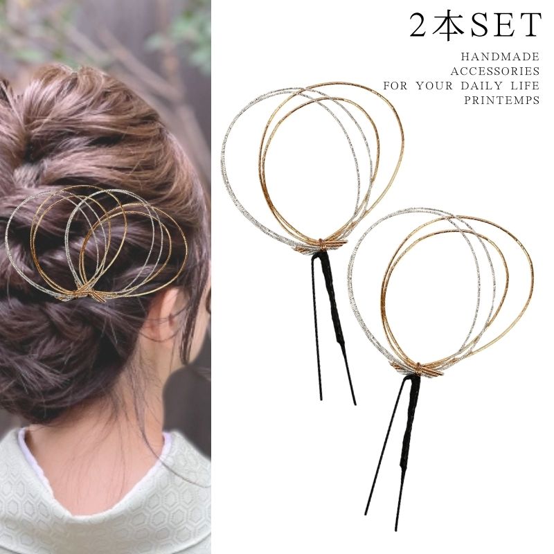 髪飾り 2本セット Uピン 水引き 65×50mm #3214 おしゃれ かわいい 結婚式 発表会 七五三 成人式 レディース 簡単 シンプル まとめ髪 お洒落 ヘアアクセ