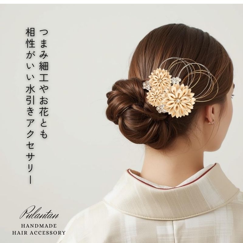 水引きだけでもシンプルでかわいい髪飾り。お花やつまみ細工との相性もいいのでプラスアクセサリーとしてもお使いいただけます。