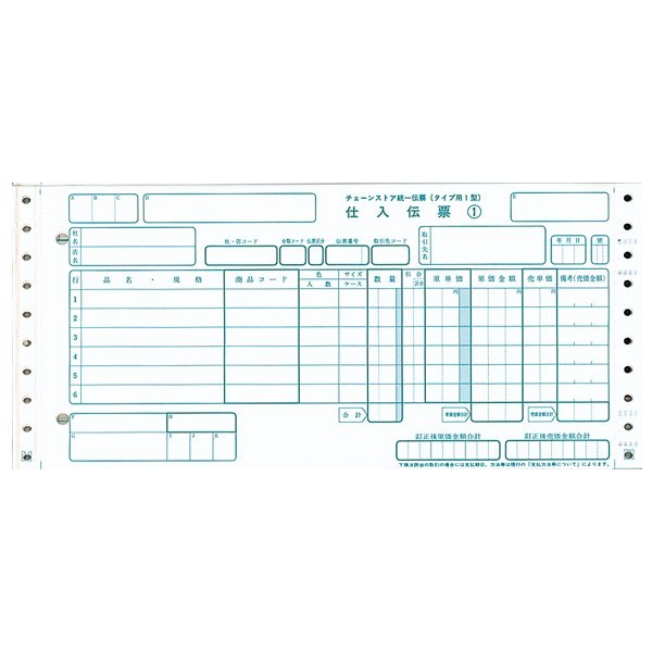 タイプ用1型 NO無し、5枚複写のチェーンストア統一伝票。