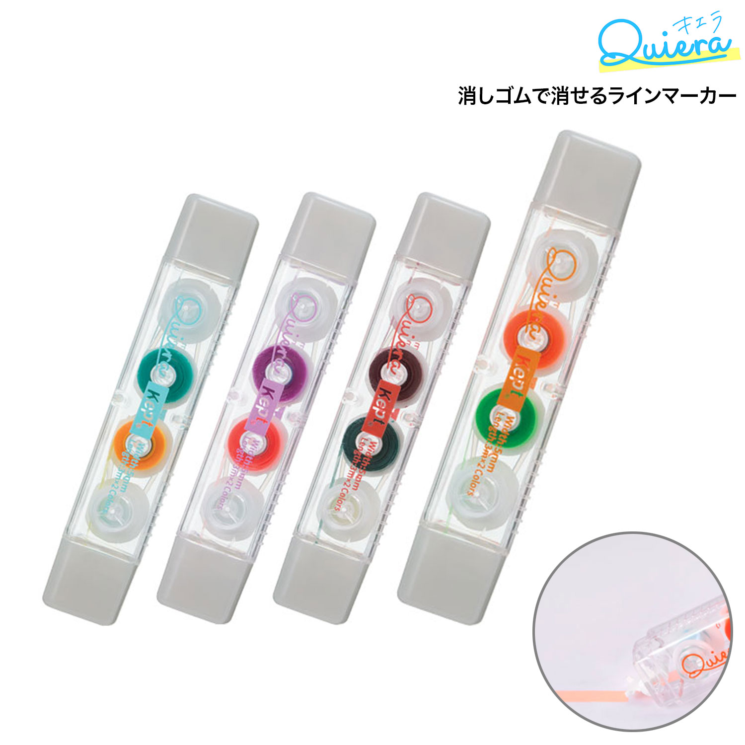 「Kept キエラ」キエラは、消しゴムで消せるラインマーカーです。