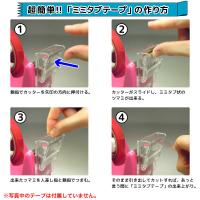 このミミタブテープ作成ツール付カッター台「ミミタブテーパーカッター」は、専用アダプタ付の「ミミタブテーパー」を附属のカッター台に差込んで使用するものです。面倒な取付作業なしで、使うことができます。