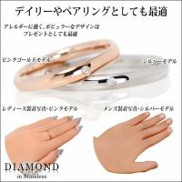 天然 ダイヤモンド ペアリング サージカル ステンレス 2.5mm 甲丸リング シンプル シルバー ピンクゴールド 指輪 2本 セット 5号〜21号 マリッジリング 結婚指輪