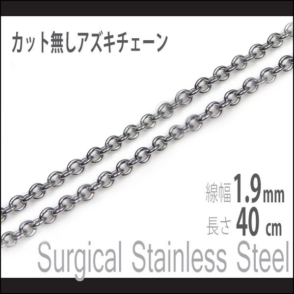 サージカルステンレス製 カット無し アズキチェーン 幅1.9mm 長さ40cm ネックレス 金属アレルギーに優しい ネックレスチェーン
