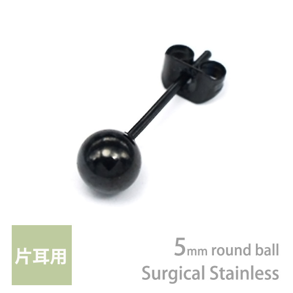 サージカルステンレス ボール 丸 5mm ブラック スタッド ピアス 片耳用