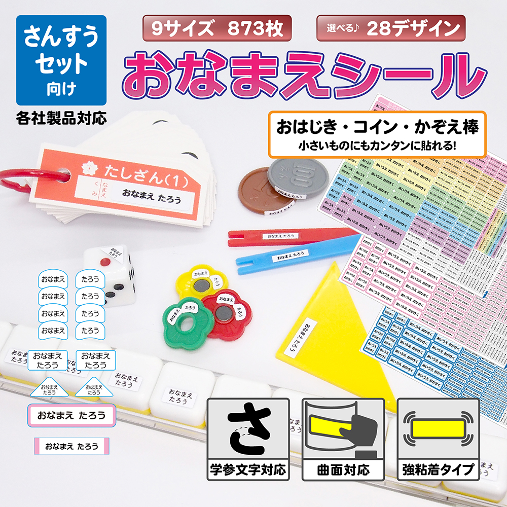 お名前シール 算数セット 防水 白 無地 おなまえシール さんすうセット タグ えんぴつ 傘 小学校 入園 ネームシール ラベル / onsE-sansusimple