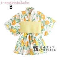 2点セット 浴衣ドレス+帯 浴衣セット 子供浴衣 6カラー ふわふわ ゆかた こども用 子ども こども ゆかたドレス 90cm 100cm 110cm 120cm 130cm