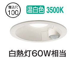 大光電機 屋内・屋外兼用人感センサー付ダウン DDL5701AW 温白色 Φ100 白熱灯60W相当 工事必要