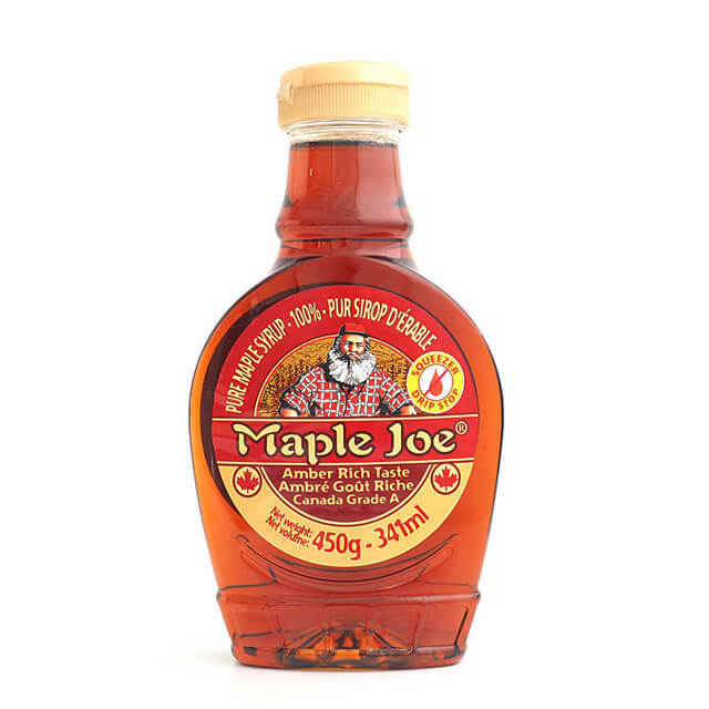 ※商品パッケージや仕様は予告なく変更になる場合がございます。食品表示情報につきましては、お手元に届きました商品の食品表示を必ずご確認いただきますようお願いします。メープルジョー メープルシロップ アンバー 450g