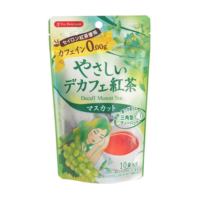 セイロン紅茶使用。カフェイン0.00g。 化学薬品を使用しない超臨界二酸化炭素抽出法で紅茶から出来る限りカフェインを取り除いています。 カフェイン0.00g*だから女性やお子様にもやさしく、本格的な味わいだからこだわり派にもおすすめです。 旨味・香りが膨らむ三角型ティーバッグ使用。フルーツ香料のみ使用。 *カフェイン0.00gとは浸出液の場合の数値です。 フルーティーなマスカットのフレーバーティー。 甘くて爽やかな香りが口の中に広がります。 |