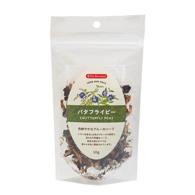 レモンを絞ると水色がブルーから紫色に変わる不思議なハーブ。