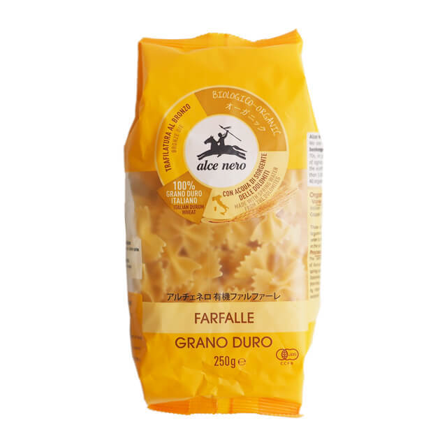 蝶の形をしたかわいいショートパスタ。有機デュラム小麦の味を香りをしっかり感じられます。ソースであえたり、スープやサラダにもどうぞ。 ※標準ゆで時間8分 |